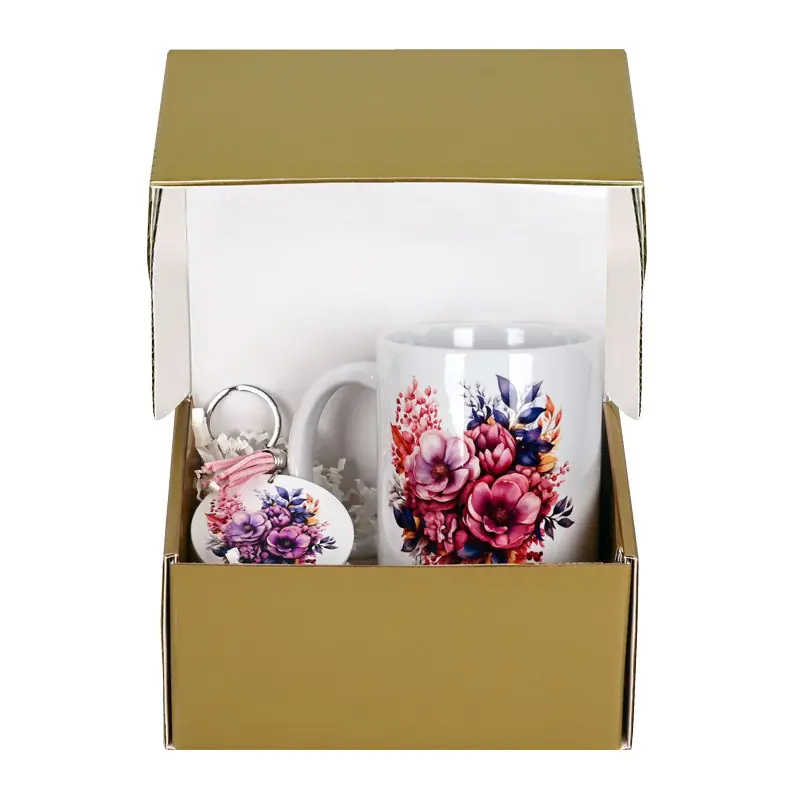 Подаръчен комплект с чаша и ключодържател - Лилави Цветя