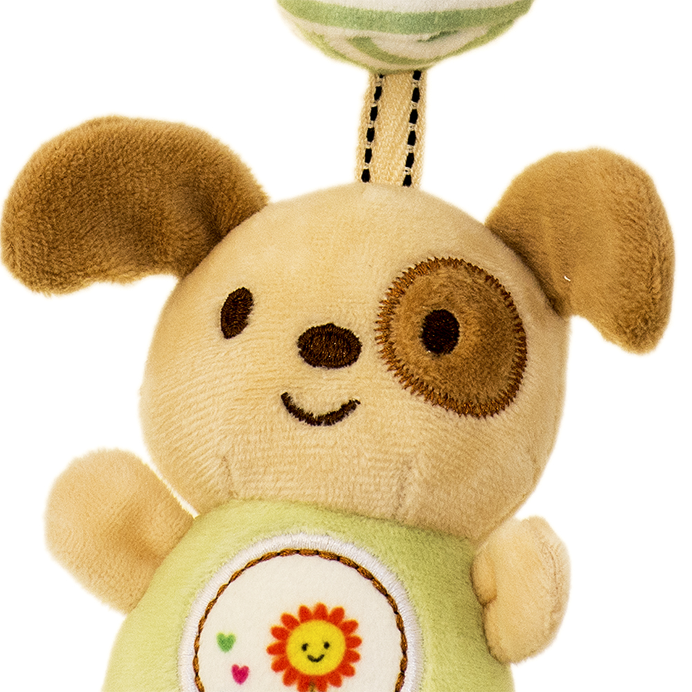 Плюшена бебешка дрънкалка за закачане с кученце е прекрасен аксесоар, нужен за всяко бебче.