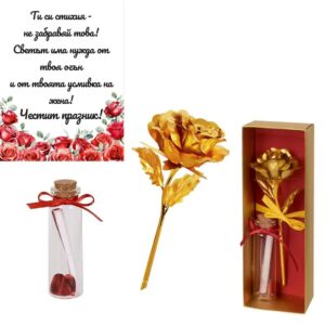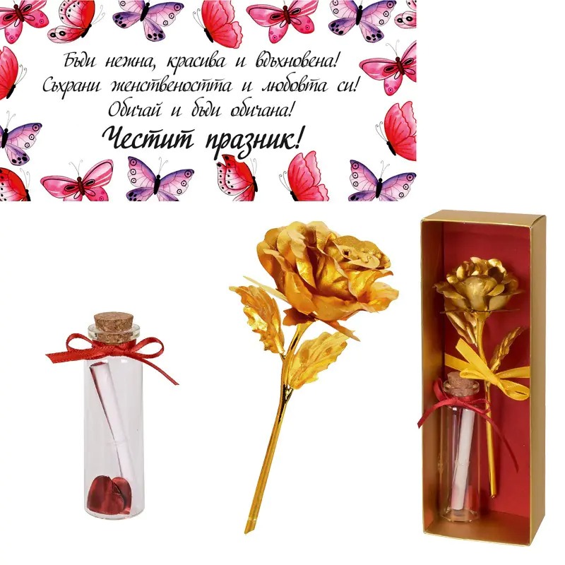 Подаръчен комплект Златна роза и послание - Честит празник
