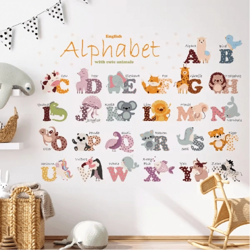 SIPO Стикери за стена за детска стая, азбука на животни
